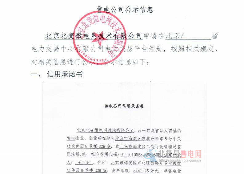北京電力交易中心關(guān)于公示受理注冊的售電公司相關(guān)信息的公告