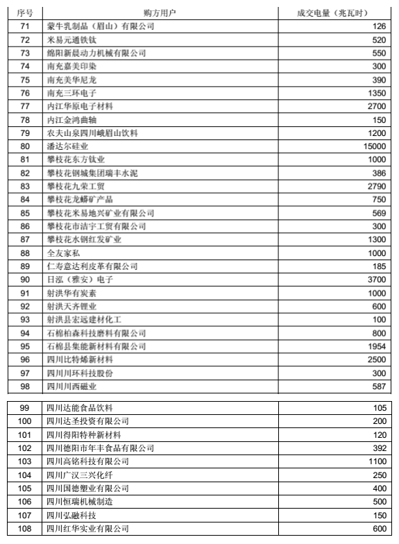 四川:8月份月度直購(gòu)電成交電量85564兆瓦時(shí)