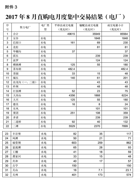 從四川電力交易中心獲悉,2017年7月24日和25日,四川電力交易中心分別組織開展了8月份月度直購(gòu)電和富余電量交易。共有91家用電企業(yè)和150家發(fā)電企業(yè)成交,成交電量85564兆瓦時(shí)。具體公告如下: