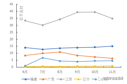 圖 2重點地區(qū)2018年6-11月月度集中競價交易的成交電量