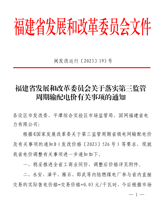 為進一步深化輸配電價改革,強化輸配電價監(jiān)管,更好服務電力市場建設發(fā)展,國家發(fā)展改革委印發(fā)了《關于第三監(jiān)管周期省級電網(wǎng)輸配電價及有關事項的通知》(發(fā)改價格〔2023〕526號),明確了第三監(jiān)管周期輸配電價有關政策,核定公布了全國各省輸配電價表。按照國家發(fā)展改革委要求,我委制定下發(fā)了《關于落實第三監(jiān)管周期輸配電價有關事項的通知》(以下簡稱《通知》),對我省有關事項作了進一步明確。
