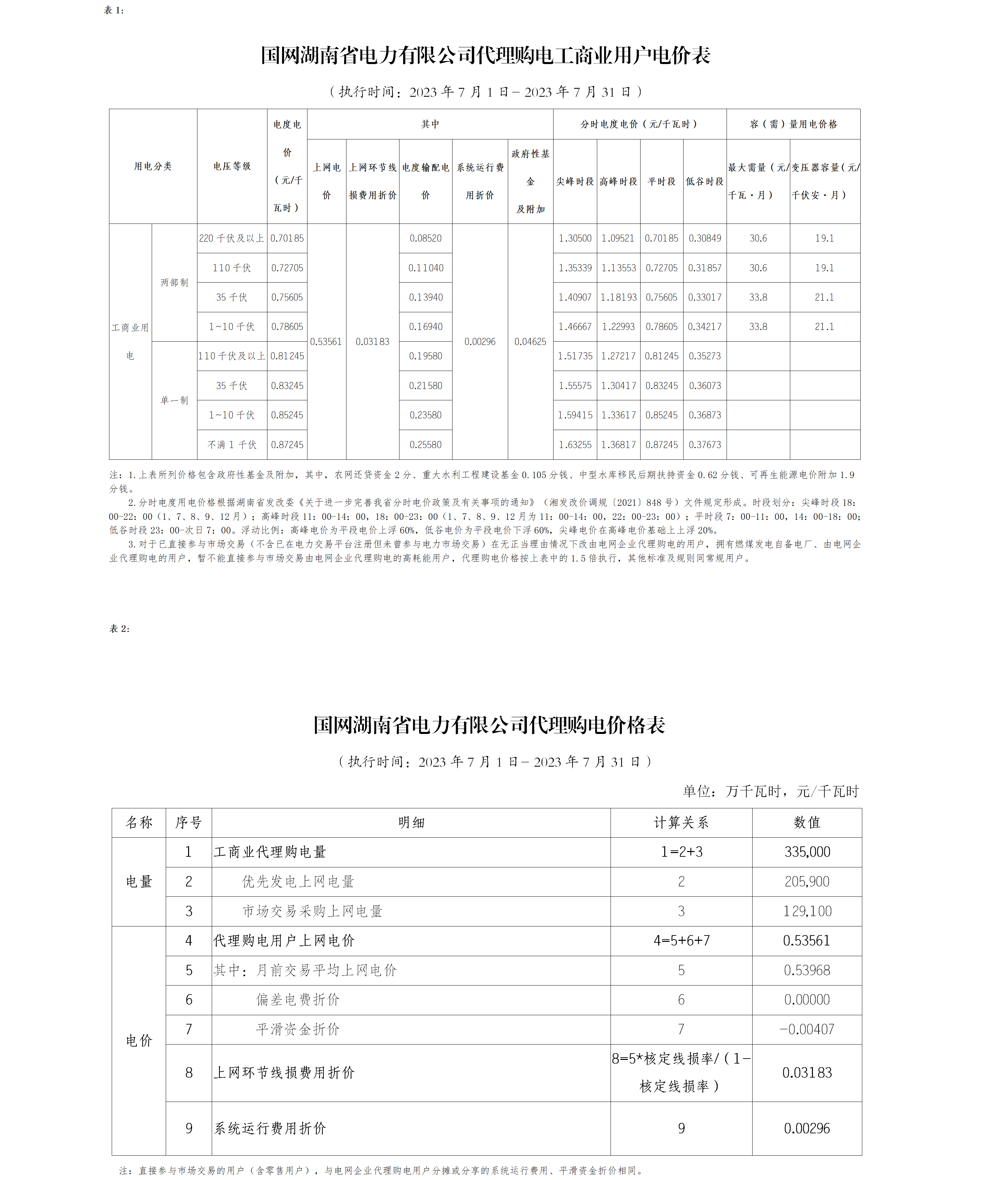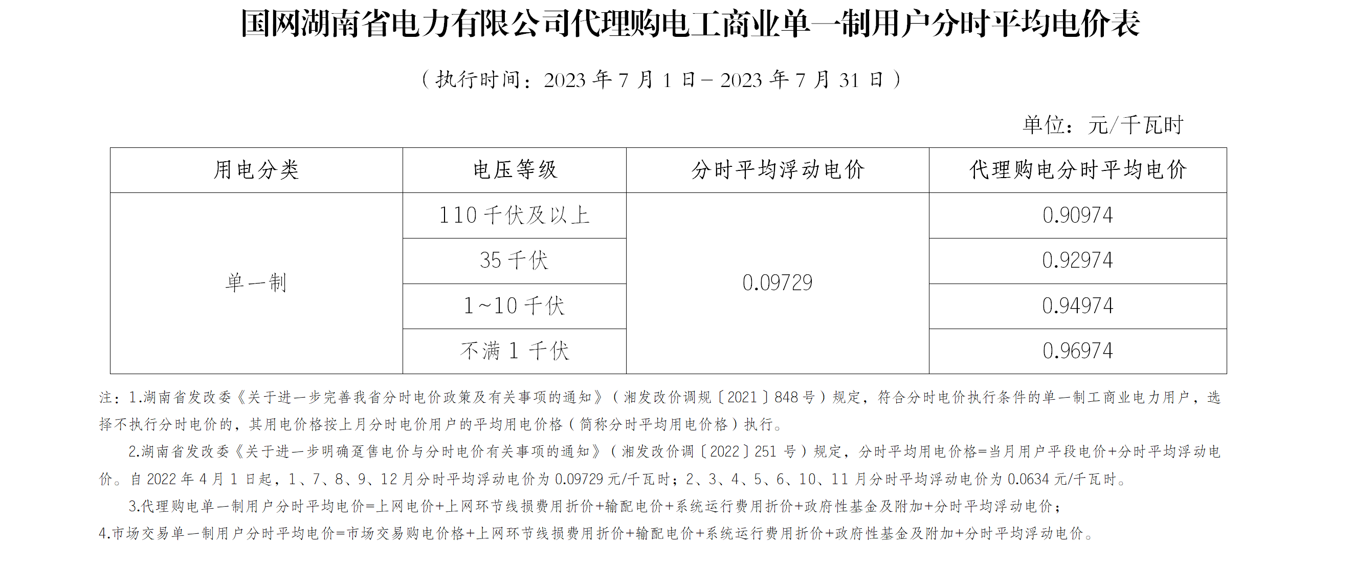 國網(wǎng)湖南省電力有限公司公布國網(wǎng)湖南省電力有限公司2023年7月代理購電價格公告、2023年7月代理購電工商業(yè)單一制用戶分時平均電價表。