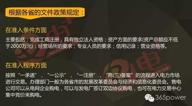 總體來講,售電公司需要滿足對(duì)應(yīng)省份規(guī)定的準(zhǔn)入條件,按照準(zhǔn)入流程進(jìn)入電力市場(chǎng)。