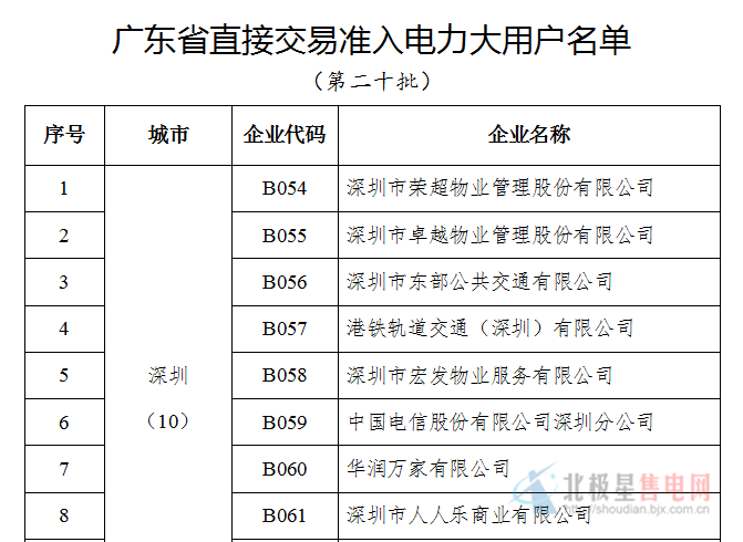 廣東省經(jīng)濟(jì)和信息化委印發(fā)第二十批直接交易準(zhǔn)入電力大用戶名單的通知
