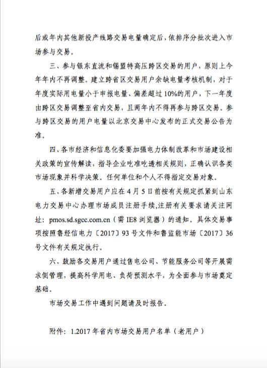 3月23日,山東省經(jīng)信委發(fā)布了《關(guān)于公布2017年電力市場交易用戶名單的通知》,此次公布的名單里相較于去年新增了464家企業(yè)。(本文轉(zhuǎn)載自微信公眾號:晶見 微信號:EnergyStudies 作者:蔣妮燁)雖然文末附通知