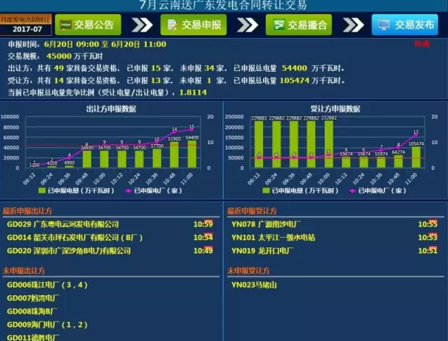6月20日上午,廣州電力交易中心的7月云南送廣東發(fā)電合同轉讓、也是南方區(qū)域首次跨省發(fā)電權交易正式啟動。經歷了模擬交易0成交后,這次的交易能否順利進行?