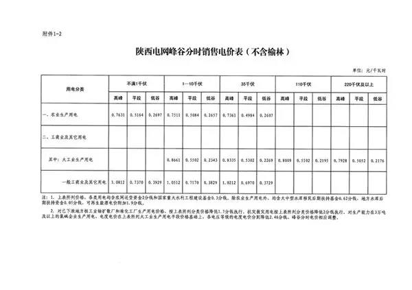 附件:1.陜西電網(wǎng)銷售電價表(不含榆林)