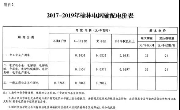2.2017-2019年榆林電網(wǎng)輸配電價表