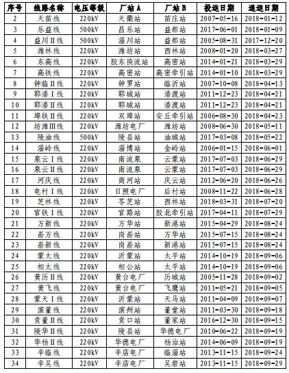 (1)500 千伏及以上系統(tǒng)共有變電站 50 座(含 1000千伏泉城站、昌樂(lè)站、高鄉(xiāng)站,800 千伏廣固、沂南換流站,660 千伏膠東換流站);變壓器 108 臺(tái),變電容量 10425萬(wàn)千伏安;輸電線(xiàn)路 127 條,長(zhǎng)度共計(jì) 8984.62 公里。