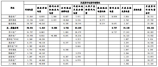 (二)發(fā)電量計(jì)劃安排情況