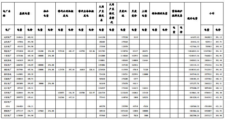 1.省外購(gòu)電交易價(jià)格信息
