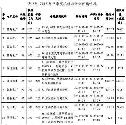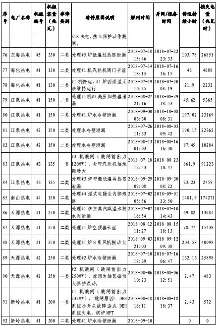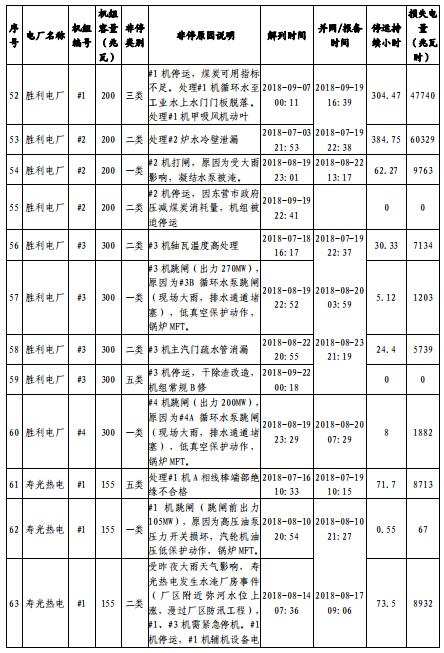 表 4-2:2018 年前三季度直調(diào)機(jī)組退運(yùn)情況表