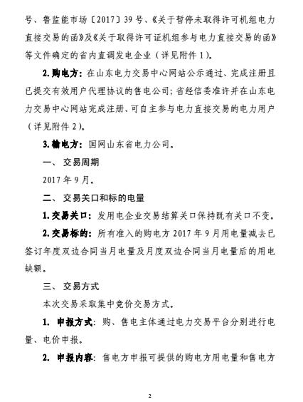 山東發(fā)布9月份電力直接交易(集中競價)公告