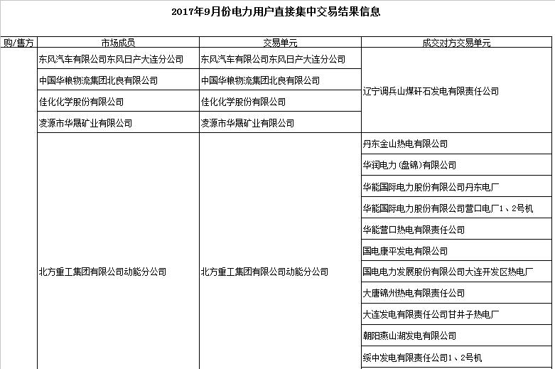 2017年9月電力用戶(hù)與發(fā)電企業(yè)月度競(jìng)價(jià)交易結(jié)果公告
