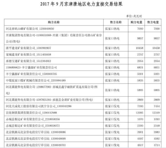 9月京津唐地區(qū)電力交易結(jié)果,成交電量32.11億千瓦時