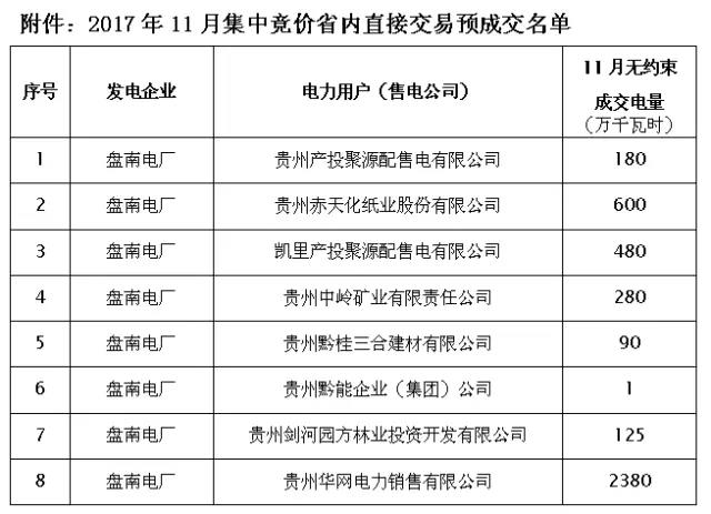 關(guān)于2017年11月集中競(jìng)價(jià)省內(nèi)直接交易預(yù)成交情況的公告