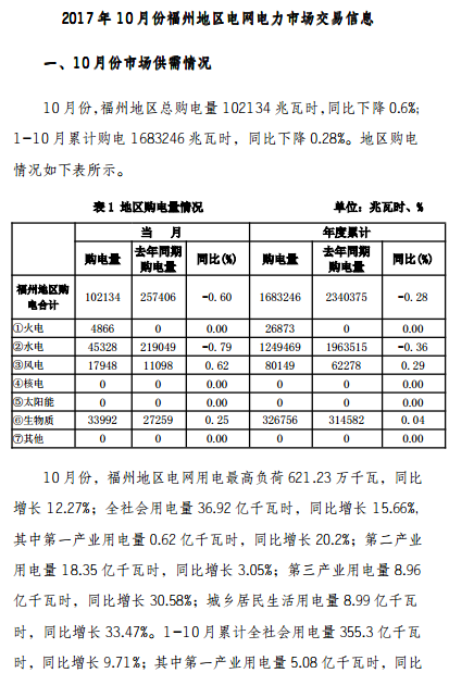 近日,福建電力交易中心披露了福州地區(qū)10月份電網(wǎng)電力市場(chǎng)交易信息,10月份, 福州地區(qū)總購電量102134兆瓦時(shí) ,10月份,福州地區(qū)電網(wǎng)用電最高負(fù)荷621 23萬千瓦,同比增長(zhǎng)12 27%;全社會(huì)用電量36 92億千瓦時(shí),同