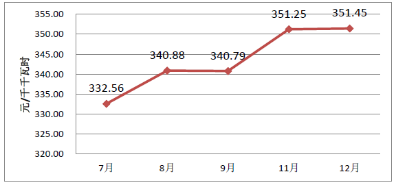 本次交易成交均價(jià)為351.45元/千千瓦時(shí)。冀北地區(qū)2017年月度直接交易成交均價(jià)完成情況如下: