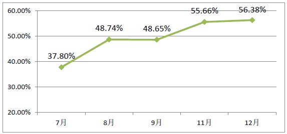 在12月份京津唐地區(qū)短期電力直接交易中,157個(gè)用戶通過售電公司代理達(dá)成交易,較上月交易新增用戶5個(gè),交易電量占比56.38%,環(huán)比上月交易提高了0.72個(gè)百分點(diǎn)。售電公司與發(fā)電企業(yè)成交均價(jià)為349.24元/千千瓦時(shí)。
