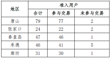 冀北地區(qū)準(zhǔn)入電力用戶227家。本次交易216家參與,11家未參與。各地市用戶交易參與情況如下: