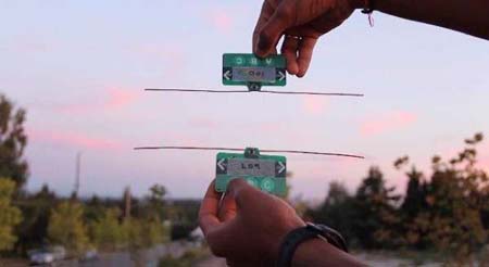 美國華盛頓大學(xué)研究員史密斯制造了兩部沒電池、但內(nèi)置可檢測和反射電視信號天線的流動裝置,兩者通過互相反射訊號,制造摩斯密碼來溝通和交換資訊。