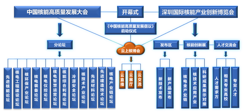 (一)核電裝備論壇、(二)核電工程建設(shè)論壇、(三)先進(jìn)核材料論壇、(四)核環(huán)保產(chǎn)業(yè)論壇、(五)先進(jìn)核能論壇、(六)核電產(chǎn)業(yè)鏈論壇、(七)核電先進(jìn)建造技術(shù)論壇、(八)核電廠冷源安全論壇、(九)核電儀控論壇、(十)核能綜合利用論壇、(十一)核電智慧運(yùn)維論壇和(十二)核技術(shù)產(chǎn)業(yè)論壇。