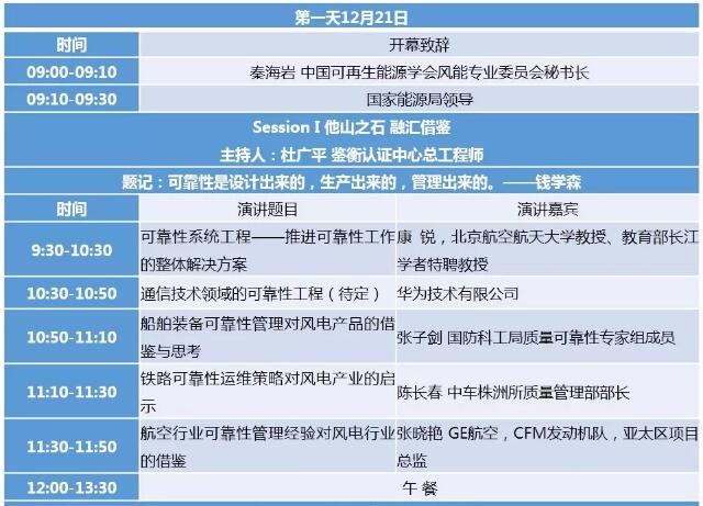 2017風(fēng)電設(shè)備質(zhì)量與可靠性論壇會(huì)議日程