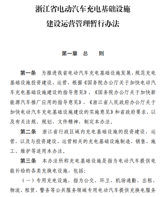 浙江省電動汽車充電基礎(chǔ)設(shè)施建設(shè)運營管理暫行辦法