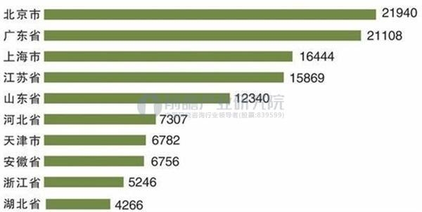 2016年各省市充電樁總量TOP10(單位:個)