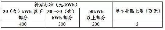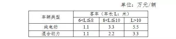 其它新能源客車補貼標準