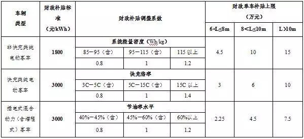 1、新能源公交車補貼金額=車輛帶電量x單位電量補貼標準x調整系數(shù)(調整系數(shù):系統(tǒng)能量密度/充電倍率/節(jié)油水平),具體如下:
