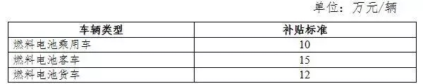 燃料電池汽車補貼標準