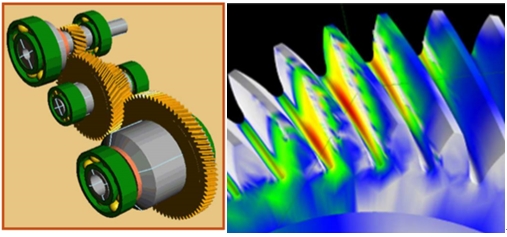 從結(jié)構(gòu)上看,eDM電驅(qū)模塊右側(cè)體積較大部分為電機(jī)(如上圖所示),左側(cè)經(jīng)過(guò)固定傳動(dòng)比齒輪后將動(dòng)力傳遞到差速器,再由差速器分配到兩側(cè)車(chē)輪。模塊使用了高精度螺旋齒輪,齒輪采用斜齒設(shè)計(jì),齒型改進(jìn)后嚙合總重合度>4,更低的齒隙使噪音有效降低。同時(shí),通過(guò)表面拋光減少閃點(diǎn)溫度,進(jìn)一步提升高速性能,實(shí)現(xiàn)齒輪部分傳遞效率>97%。