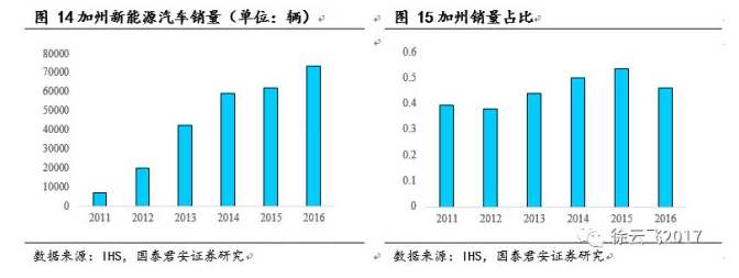 加州實行積分制政策有效培育了一批致力于研發(fā)新能源汽車的企業(yè),刺激傳統(tǒng)車企研發(fā)銷售新能源汽車。各大車企的積極加入使得整個市場形成良性競爭,新能源汽車銷量全美一枝獨秀,也吸引其他州開始實施積分政策。