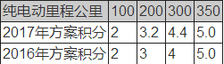 2017年方案堅(jiān)持“積分與純電動(dòng)里程掛鉤”,而且積分有所放寬。