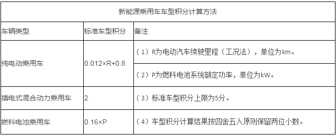 新能源乘用車車型積分計算方法: