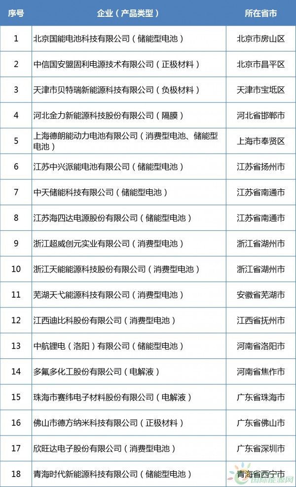 天能、貝特瑞、中天儲能等18家企業(yè)入選符合《鋰離子電池行業(yè)規(guī)范條件》企業(yè)名單