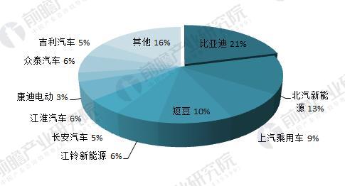從企業(yè)銷售情況看,比亞迪為國內新能源乘用車的主要生產(chǎn)企業(yè),銷量占比達到21%。北汽新能源公司新能源乘用車的銷量占現(xiàn)階段總銷量的13%。可見各公司在現(xiàn)階段對新能源汽車研發(fā)、生產(chǎn)的重視,有效的推進了我國新能源汽車的應用和發(fā)展。
