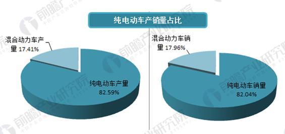 從車型分類來看,新能源汽車以純電動汽車和混合動力汽車為主。2015年后在新能源汽車整體利好的發(fā)展背景下,純電動汽車和混合動力車的產(chǎn)銷量不斷增加。2016年我國純電動汽車產(chǎn)量達到41.7萬量,銷量為40.9萬輛,產(chǎn)量占比為82.59%,銷量占比為82.04%而混合動力車的產(chǎn)量為9.9萬輛,實現(xiàn)了9.8萬輛的銷售業(yè)績,產(chǎn)銷量占比分別為17.41%和17.96%。從近年兩種車型的產(chǎn)銷情況來看,純電動汽車是新能源汽車的主要發(fā)展方向,且隨著需求的增加,供需差距逐漸縮小。