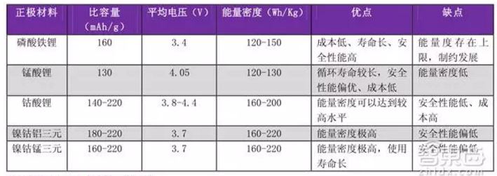當下不同正極材料動力電池的性能比較