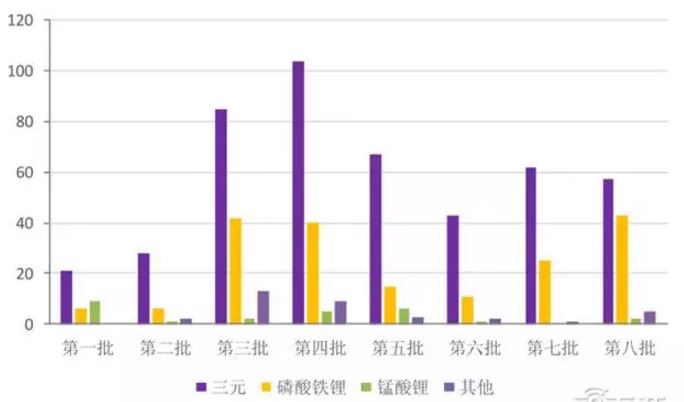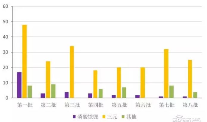 1-8批新能源汽車推薦名錄乘用車三元鋰電占比較高