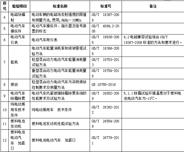 新能源汽車產(chǎn)品專項檢驗標(biāo)準(zhǔn)目錄