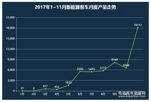 馬上2017年就要翻篇了,在過(guò)去的一年里,中國(guó)新能源汽車市場(chǎng)依然保持著快速增長(zhǎng)的態(tài)勢(shì)。2017年中國(guó)新能源汽車市場(chǎng)呈現(xiàn)出什么樣的趨勢(shì)和態(tài)勢(shì)?讓我們一起來(lái)看一看。中汽協(xié)發(fā)布的數(shù)據(jù)顯示,1-11月,新能源汽車產(chǎn)銷分