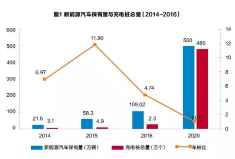 三是充電樁產(chǎn)業(yè)市場容量巨大,發(fā)展前景廣闊。根據(jù)《電動汽車充電基礎設施發(fā)展指南(2015-2020)》的要求,2020年國內(nèi)新增集中式充換電站將超過 1.2 萬座,分散式充電樁需超過 480 萬個,車樁比為1.04。而2016年底,我國充電樁總量為23萬,僅完成目標量的4.79%,總量缺口高達457萬,說明充電樁產(chǎn)業(yè)市場潛力巨大,開發(fā)前景廣闊。
