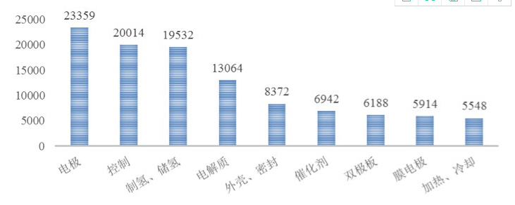2. 國內(nèi)技術(shù)研發(fā)重點指向電極、制氫、儲氫、電解質(zhì)膜、控制、催化劑等技術(shù)