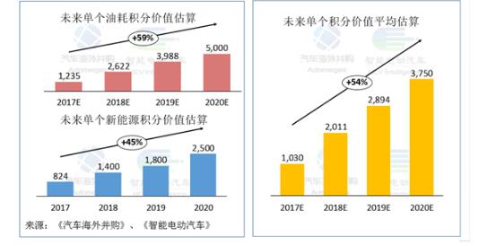 由此推算,為消除單個油耗負積分需要投入的金額從2017年的1200元左右將猛增到2020年的5000元左右,年復合增產率為59%。