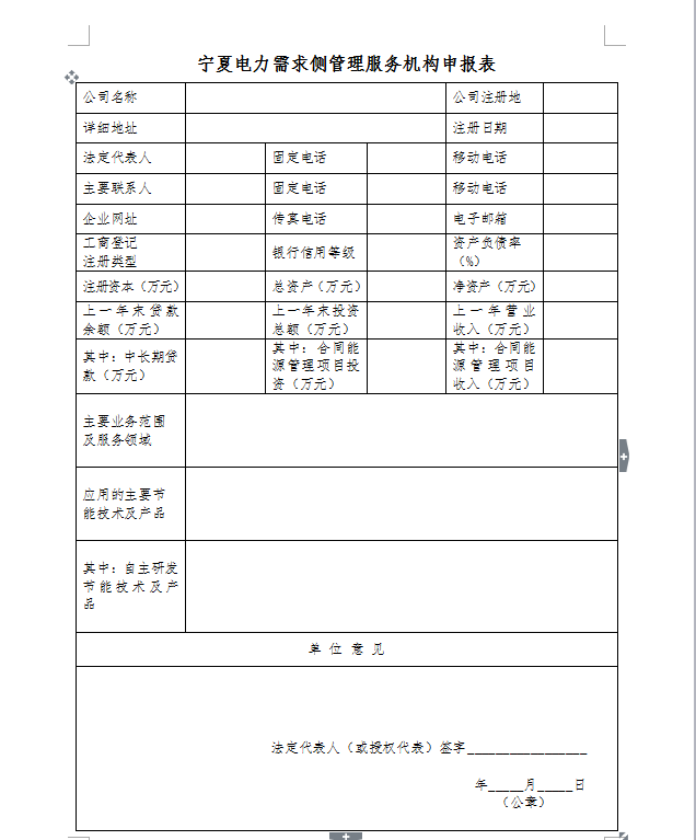 本單位自愿申請(qǐng)參與寧夏電力需求側(cè)管理工作,并承諾所提交的申報(bào)材料真實(shí)、合法、有效。同意在國(guó)家法律法規(guī)范圍內(nèi)披露企業(yè)有關(guān)信用信息。