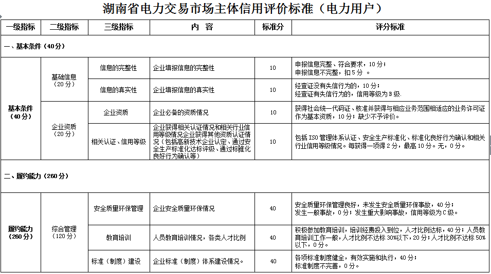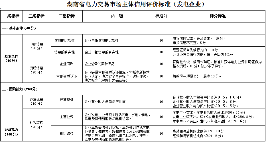 湖南省電力交易市場(chǎng)主體信用評(píng)價(jià)管理工作暫行辦法征求意見(jiàn)