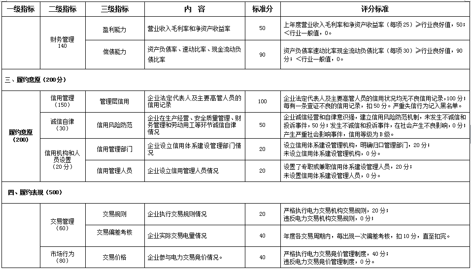 湖南省經(jīng)信委日前發(fā)布了關(guān)于征求《湖南省電力交易市場(chǎng)主體信用評(píng)價(jià)管理工作暫行辦法》(征求意見(jiàn)稿),辦法中包含電力用戶(hù)、售電公司和發(fā)電企業(yè)的信用評(píng)價(jià)標(biāo)準(zhǔn)。《信用評(píng)價(jià)標(biāo)準(zhǔn)》根據(jù)各市場(chǎng)主體市場(chǎng)功能不同,分