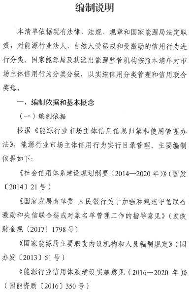 能源局發(fā)布《能源行業(yè)市場主體信用行為清單(2018版)》